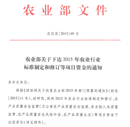 通威股份檢測中心成功中標國家農業(yè)部標準制定項目