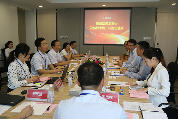 美國馬里蘭大學(xué)與FDA食品安全聯(lián)合研究所所長(cháng)孟江洪博士及納比生物公司一行訪(fǎng)問(wèn)通威