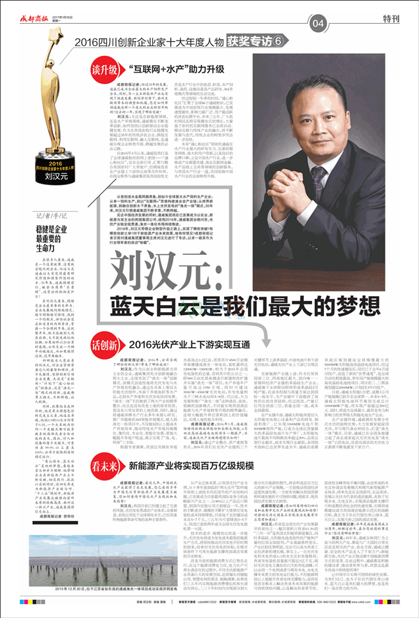 成都商報專(zhuān)訪(fǎng)劉漢元主席:藍天白云是我們最大的夢(mèng)想
