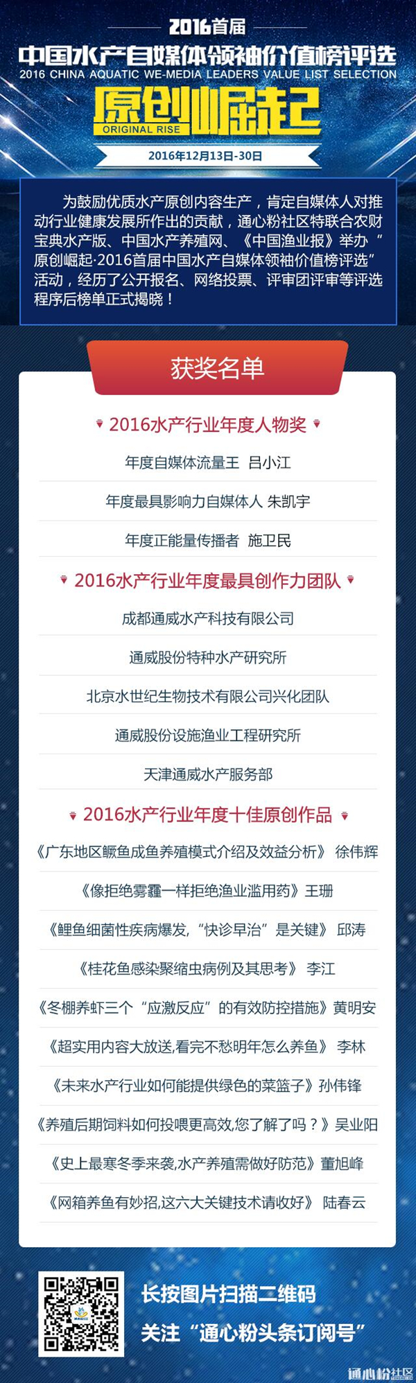 “ 2016原創(chuàng )崛起·首屆中國水產(chǎn)自媒體領(lǐng)袖價(jià)值榜評選”圓滿(mǎn)落幕