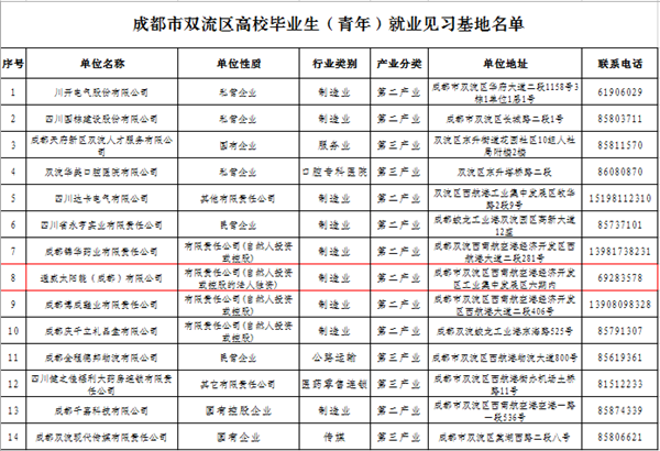 通威太陽(yáng)能成功申報雙流區高校畢業(yè)生見(jiàn)習基地