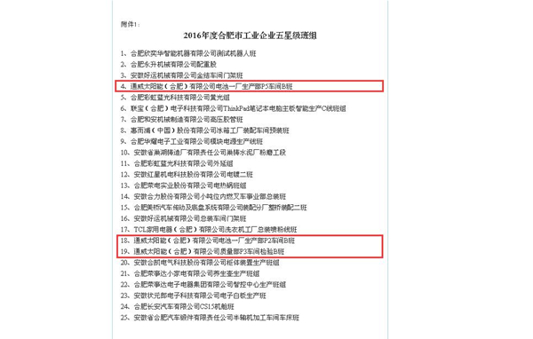 通威太陽(yáng)能獲評“年度合肥市工業(yè)企業(yè)五星級班組”